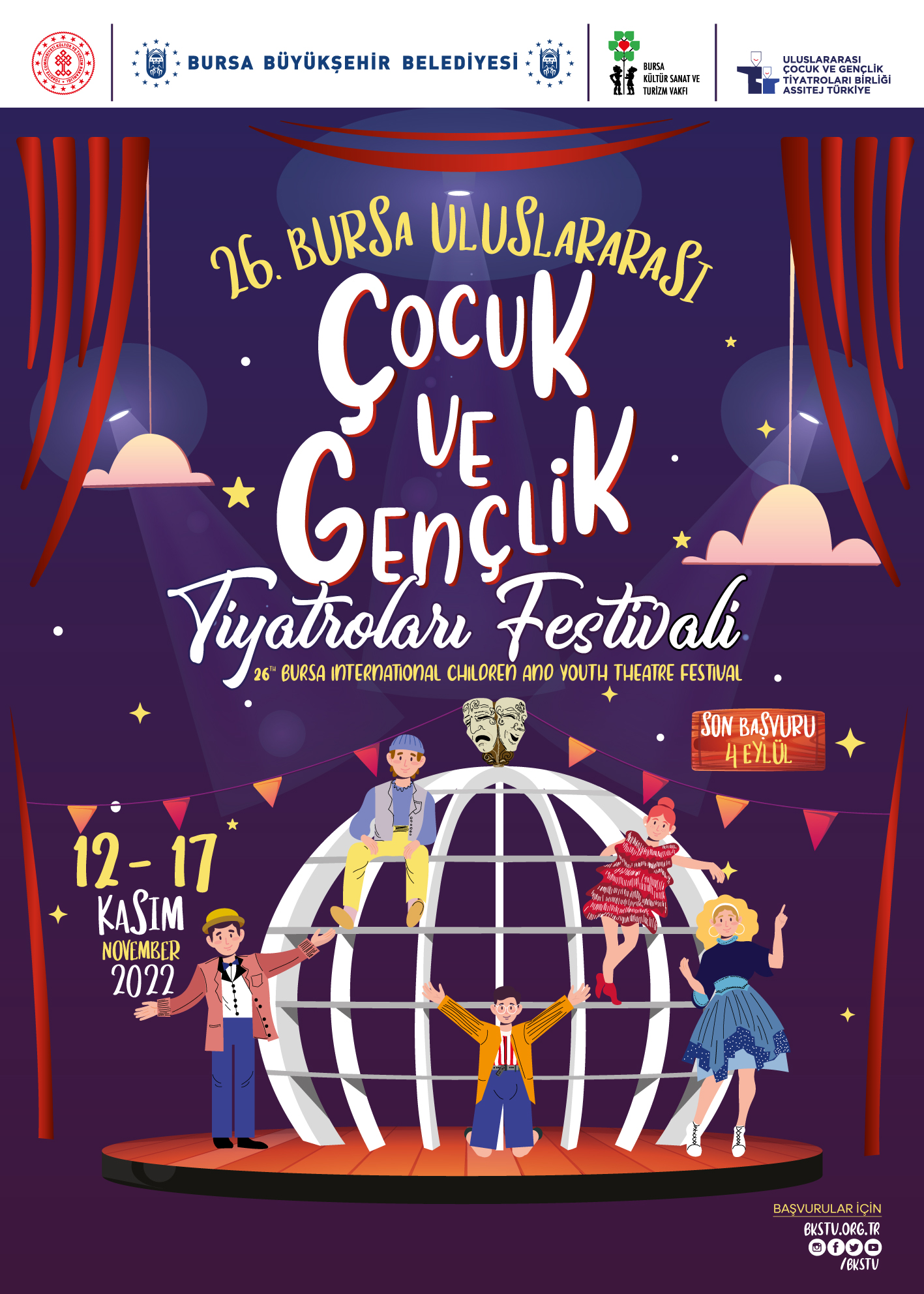 26. Bursa Uluslararası Çocuk ve Gençlik Tiyatroları Festivali’nde gösteri yapmak isteyen tiyatro gruplarının başvuruları 4 Eylül Pazar günü sona eriyor.