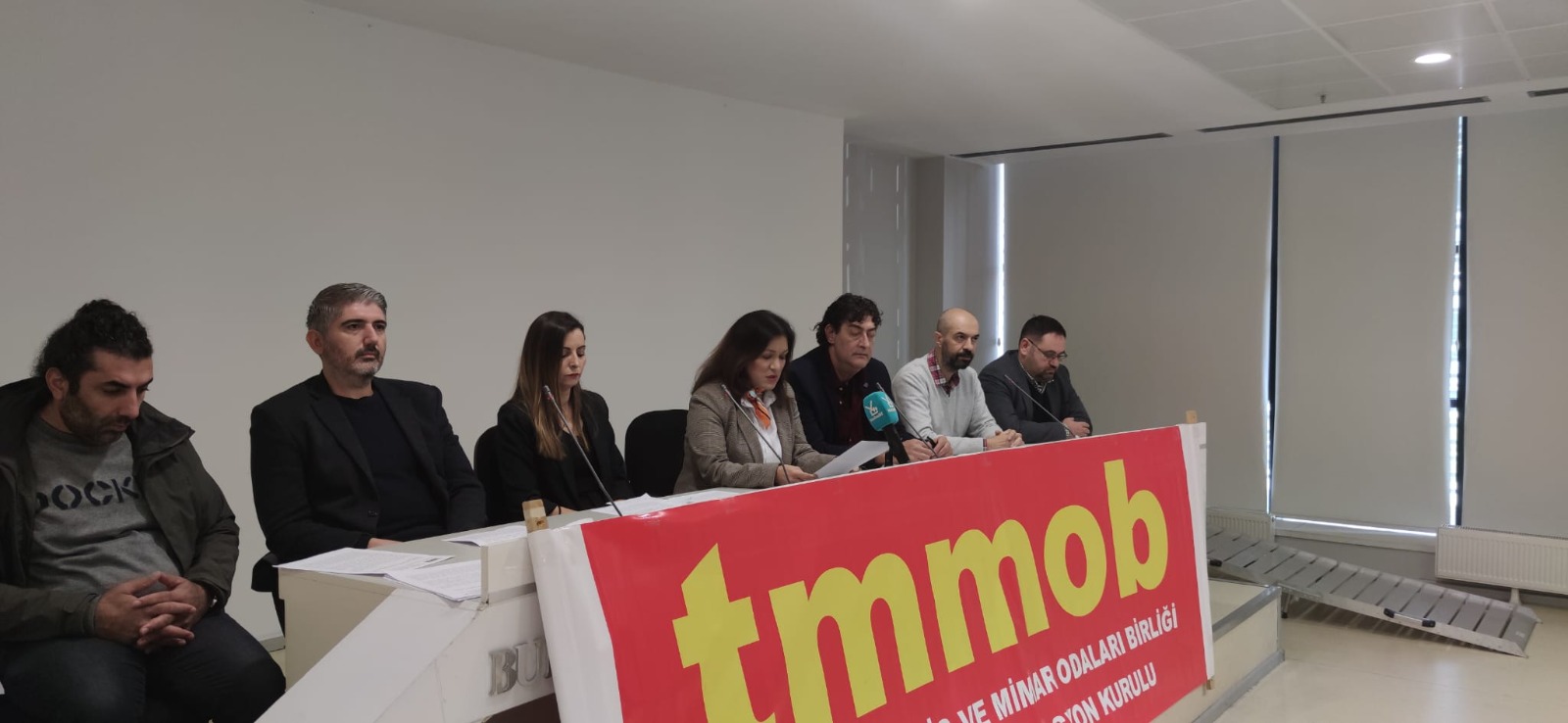 TMMOB Bursa İKK Sekreteri ve Mimarlar Odası Bursa Şubesi Başkanı Şirin Rodoplu Şimşek tarafından okunan basın açıklaması şöyle: