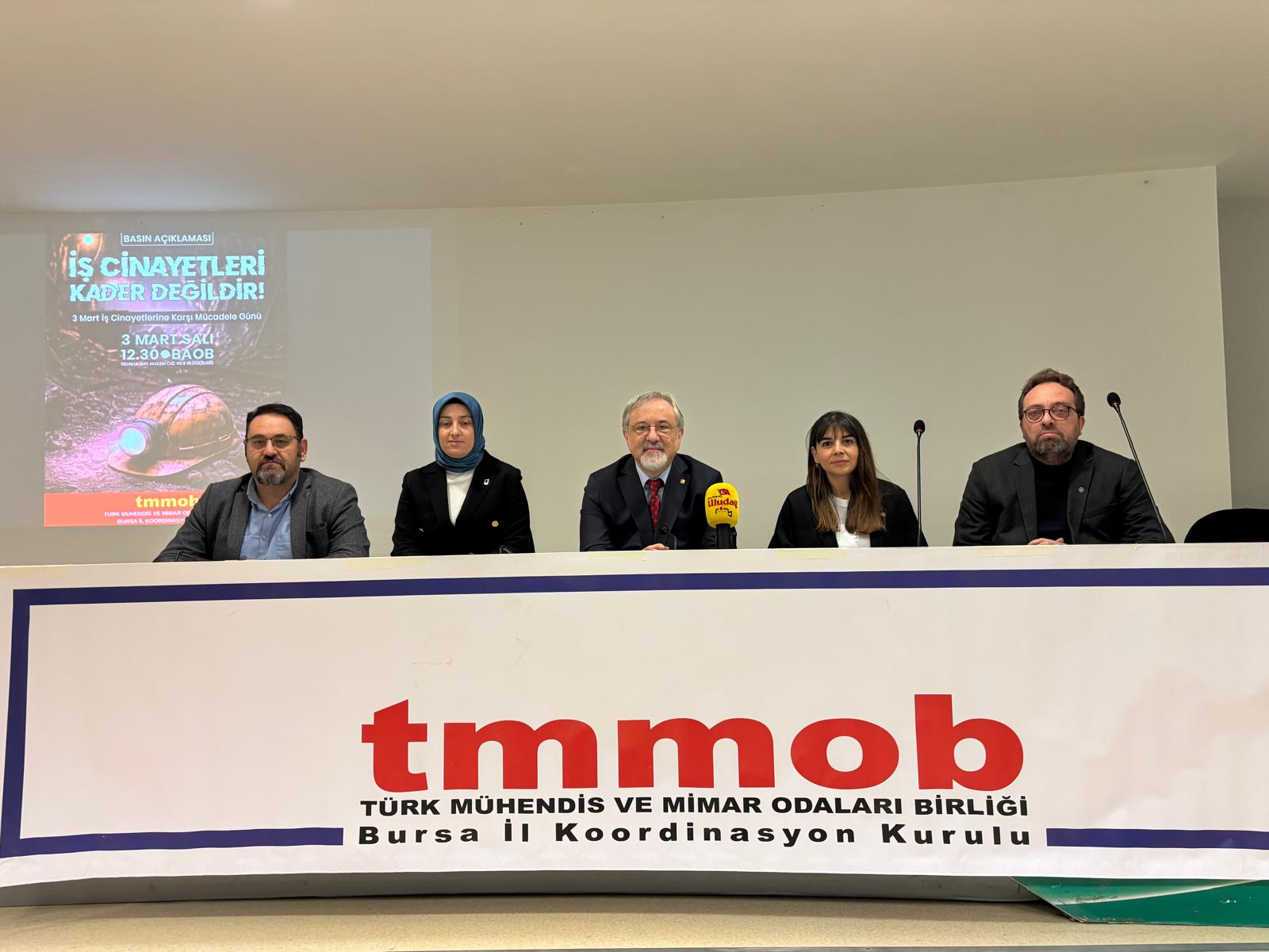 TMMOB adına basın metnini kamuoyuna okuyan Bursa İl Koordinasyon Kurulu Sekreteri Murat Korkut, 3 Mart 1992’de Zonguldak Kozlu’daki kömür ocağında meydana gelen ve 263 madencinin yaşamını yitirdiği grizu patlamasının 34’üncü yılı dolayısıyla bir araya geldiklerini belirterek, “Kozlu’da kaybettiğimiz emekçileri saygıyla anıyor, onların anısını iş cinayetlerine karşı yürüttüğümüz mücadelenin tarihsel sorumluluğu olarak görüyoruz” dedi.