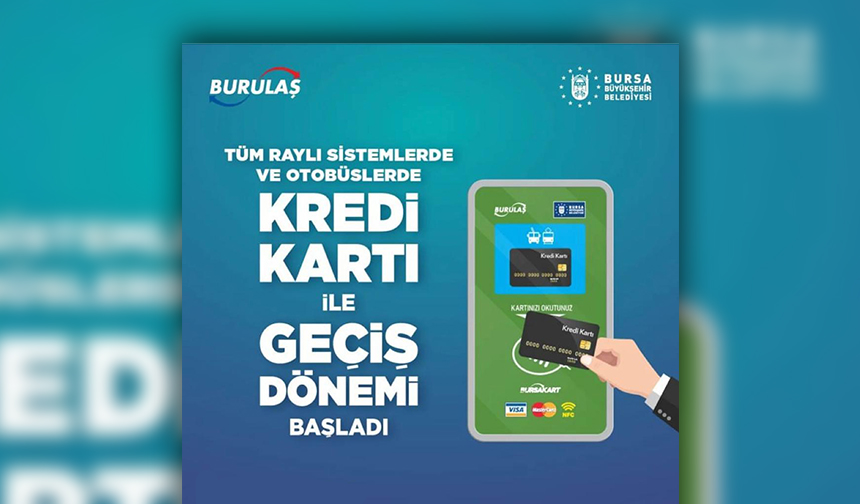Metroda bekleme sürelerinin kısaltılması, toplu taşıma araçlarının modernize edilmesi gibi yatırımlarla toplu ulaşımı sürekli teşvik eden Bursa Büyükşehir Belediyesi, şimdi de metro ve validatör bulunan otobüslerde kredi kartı ile ödeme dönemini başlattı. Temassız ödeme özelliği olan Visa ve MasterCard kredi kartları ile NFC özelliği bulunan akıllı telefonlarla yapılacak ödemelerde, banka tarafından yürürlükteki komisyon bedeli alınacak. Tam tarifenin uygulanacağı kredi kartı ödemelerinde ulaşım ücretinin her 5 TL’ye kadar olan kısmı için 1 TL, 5 TL ile 10 TL arasında olan kısmı için 2 TL ve 10 TL ile 15 TL arasındaki ulaşım ücretine karşılık da 3 TL komisyon ücreti alınacak.