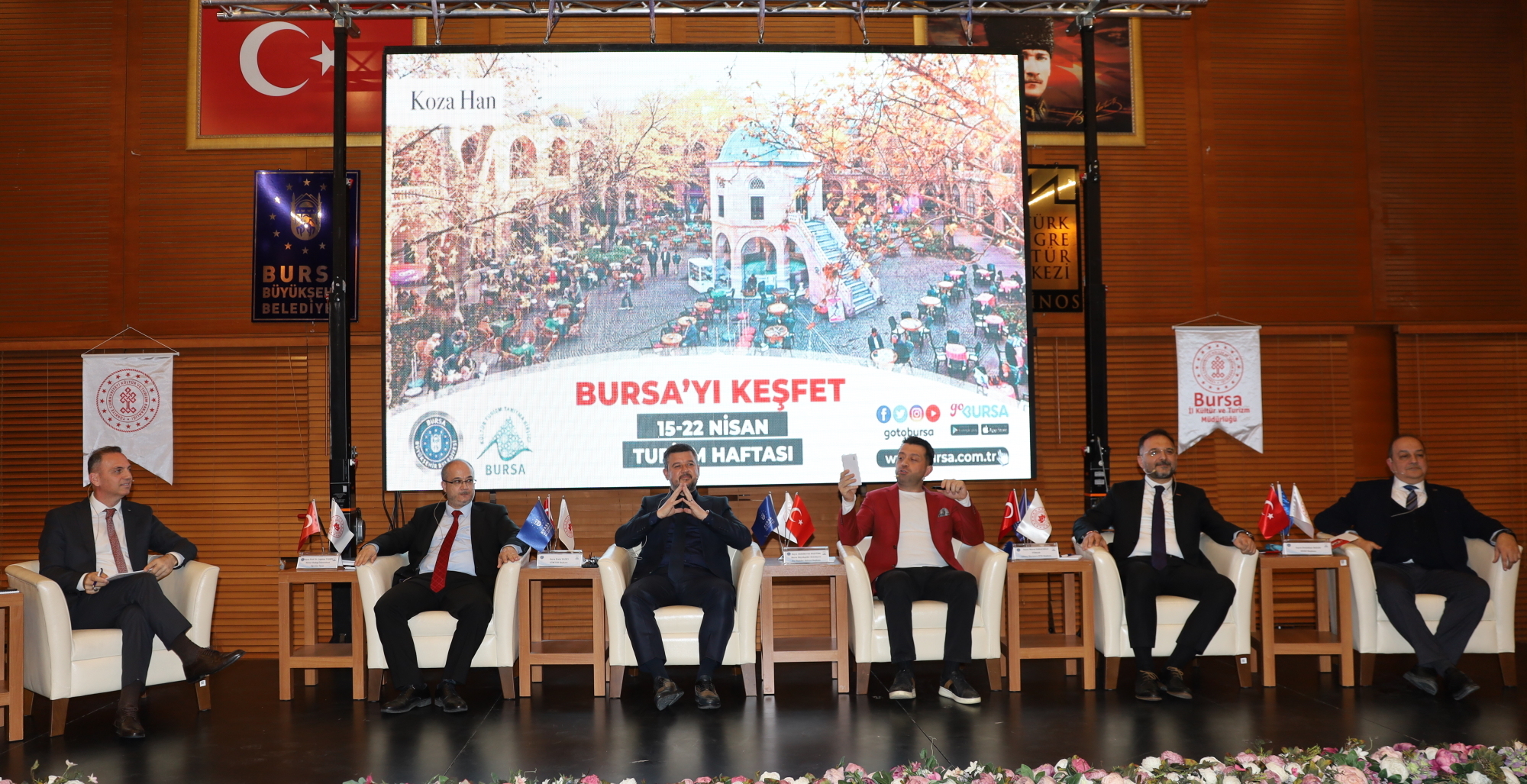 Turizm Haftası etkinlikleri kapsamında, ‘Bursa’da Turizmin Geleceği’ konulu panel gerçekleştirildi. Büyükşehir Belediyesi’nin ev sahipliğinde Kültür ve Turizm İl Müdürlüğü’nce düzenlenen programa, Bursa’da turizm alanında eğitim veren Şehit Erol Olçok Mesleki ve Teknik Anadolu Lisesi, Muradiye Mesleki ve Teknik Anadolu Lisesi ve Havva Aslanoba Mesleki ve Teknik Anadolu Lisesi öğrenci ile öğretmenleri katıldı. Panelin moderatörlüğünü Kültür ve Turizm İl Müdürü Dr. Kamil Özer yaptı. Büyükşehir Belediyesi Dış İlişkiler Dairesi Başkanı Abdülkerim Baştürk, TÜRSAB Güney Marmara Bölge Temsil Kurulu Başkanı Murat Saraçoğlu, GÜMTOB Başkanı Ersin Yazıcı, Bursa Rehberler Odası Başkanı Denizhan Sezgin ve Uludağ Üniversitesi Öğretim Üyesi Prof. Dr. Çağatan Taşkın, etkinlikte konuşmacı olarak yer aldı.