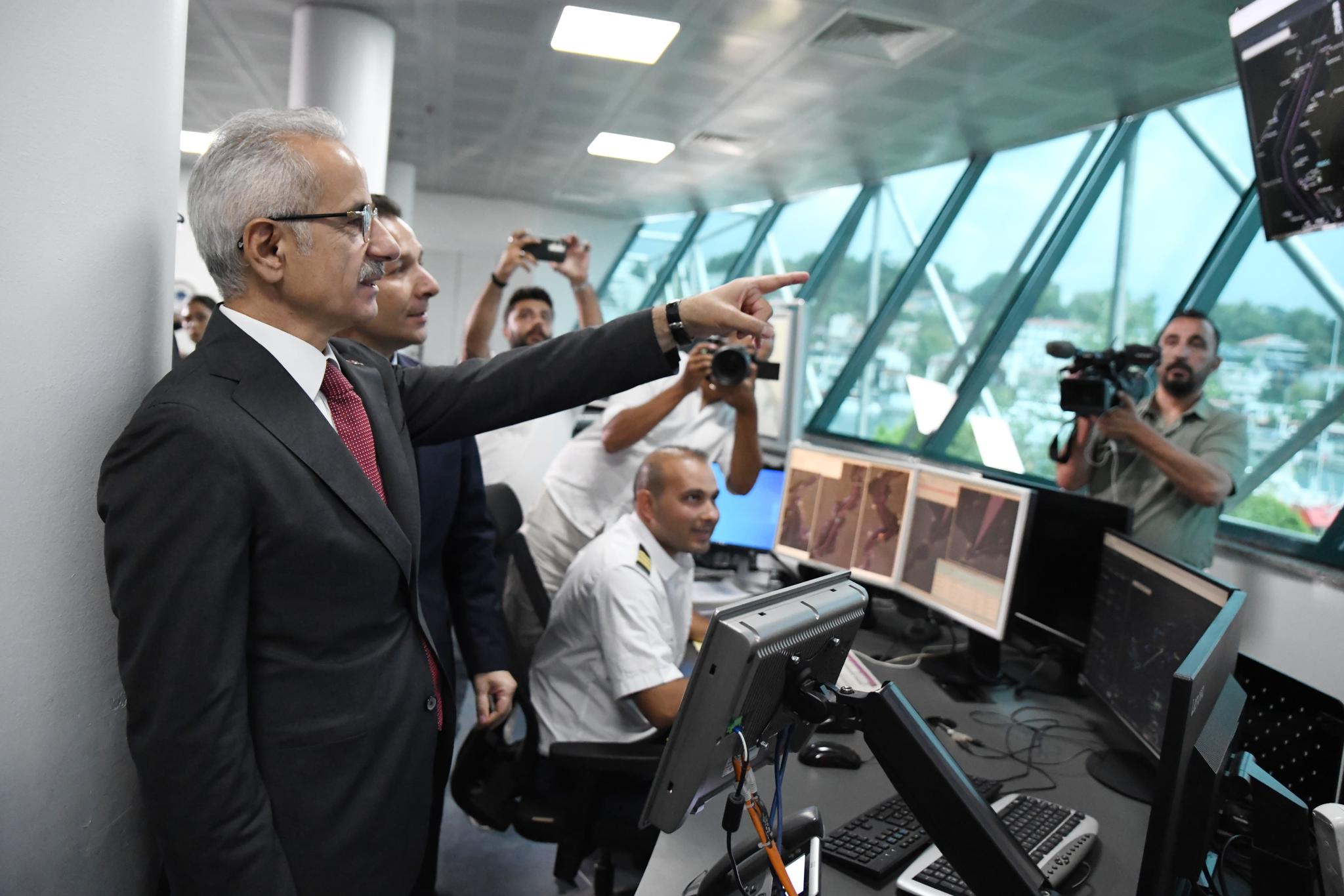 Bakan Uraloğlu, Ulaştırma ve Altyapı Bakanlığının denizlerde seyir, can, mal ve çevre emniyetine de büyük önem verdiğini belirterek, denizleri; COSPAS-SARSAT uydu yardımlı arama kurtarma sistemi ve gelişmiş haberleşme sistemleri ile dinlediklerini, Otomatik Tanımlama Sistemleri ile izlediklerini ve Gemi Trafik Hizmetleri Merkezleri ile yönettiklerini söyledi. Uraloğlu, 2003 yılında boğazlarımızdaki gemi trafiğini yönetmek amacı ile Türk Boğazları Gemi Trafik Hizmetleri Merkezini kurduklarını anımsatarak, “Diğer yoğun gemi trafiğinin yaşandığı deniz yetki alanlarını da kapsam altına almak amacıyla Gemi Trafik Yönetim Sistemi projesini hayata geçirdik. İzmit Gemi Trafik Hizmetleri Merkezini 2016 yılında, İzmir Gemi Trafik Hizmetleri Merkezi’ni 2017 yılında, Mersin Gemi Trafik Hizmetleri Merkezi’ni ise 2019 yılında hizmete açtık. Ankara’da Gemi Trafik Hizmetleri Merkezlerinden elde edilen verilerle tüm kapsama alanlarını gösterir Gemi Trafik Yönetim Merkezi’ni de hayata geçirdik. Bu sistemin 2003 yılında hizmete başlaması da elbette bir tesadüf değildir. Sayın Cumhurbaşkanımızın liderliğinde AK Parti Hükümetlerinin denizciliğe, denizcilerimize, insanımızın can ve mal güvenliğine verdiği önemin göstergesidir.” şeklinde konuştu.