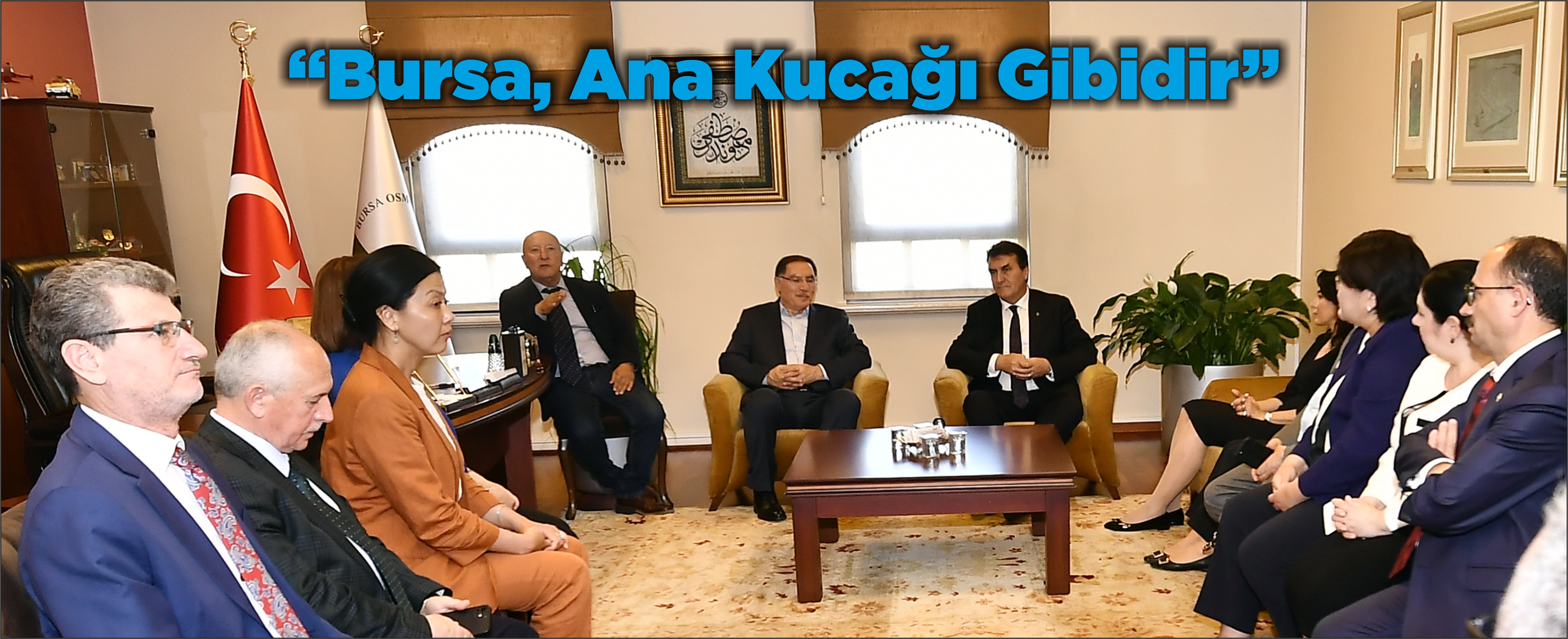 Ziyaretten duyduğu memnuniyeti dile getiren Osmangazi Belediye Başkanı Mustafa Dündar da, Türk Dünyası adına önemli olan TÜRKOMB kuruluş toplantısının, Türk Dünyası Kültür Başkenti Bursa’ya ayrı bir zenginlik katacağını söyledi. Bursa’nın Balkanlar’dan Orta Asya’ya kadar bütün gönül coğrafyasına hitap ettiğine vurgu yapan Dündar, “Kadim şehir Bursa’mız, Osmanlı’yı kuran şehir olduğu için Balkanlar’ın yanı sıra Orta Asya’dan Kafkaslar’a kadar tüm Türk dünyasına hitap eden ana kucağı gibidir. Nerede birinin başı sıkışsa kurtuluş yeri olarak Bursa’yı görür. Kırgızistan, Kazakistan, Özbekistan ve Moğolistan’da kardeş şehirlerimiz var. Nisan ayında bayram havasında geçen Bursa’nın Fethi Şenliklerimiz’de kardeş şehirlerimiz ile burada buluştuk. Osmangazi Belediyesi olarak Adriyatik’ten Çin Seddi’ne kadar ilişkilerimiz var” diye konuştu.