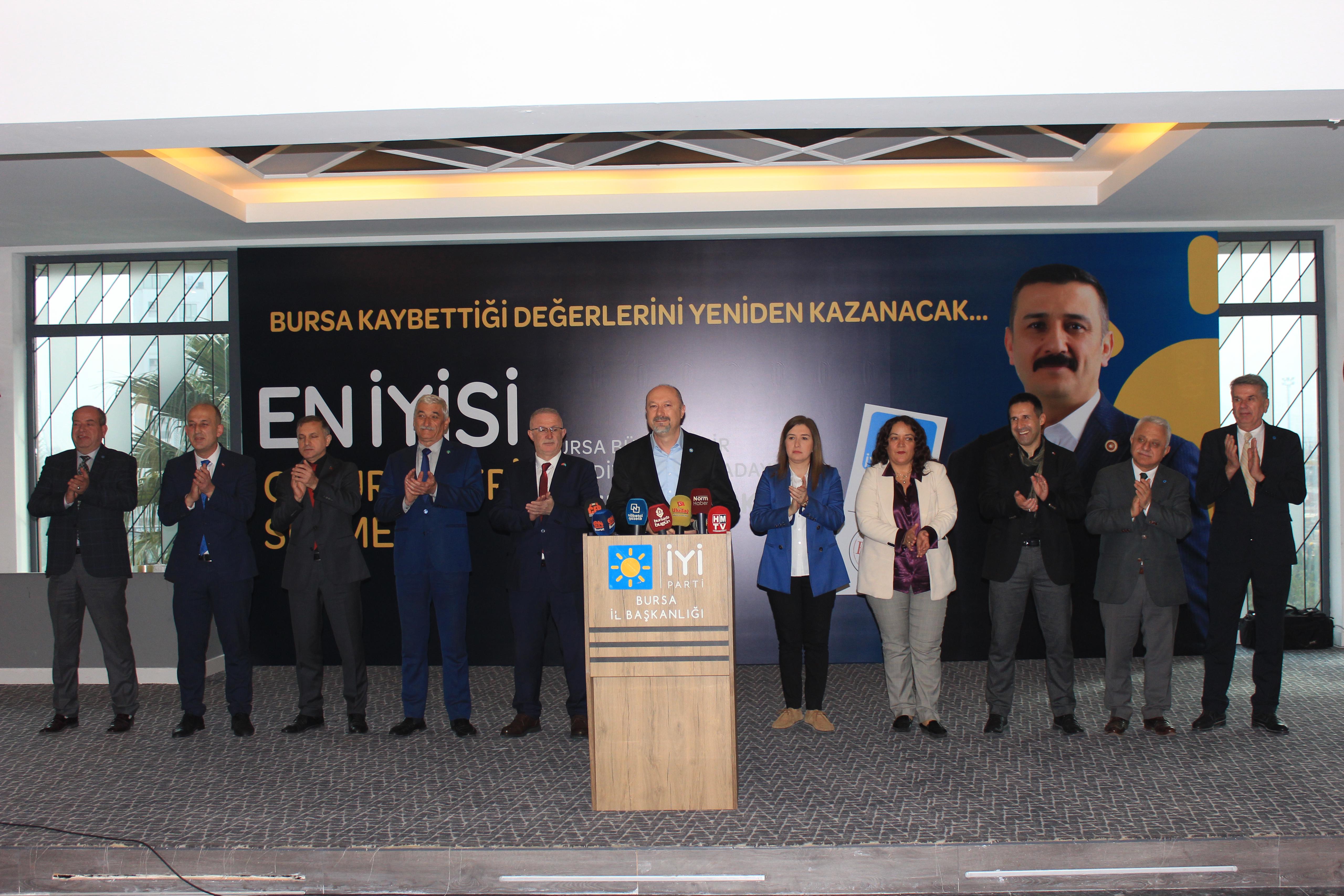 Hasanoğlu, toplantıda ayrıca 31 Mart yerel seçimlerinde İyi Parti'nin Bursa'daki belediye başkan adaylarını da tanıttı.