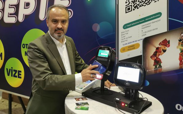 Başkan Aktaş, açıklamasının ardından kendisine verilen Bursakart’ı kullanarak sistemi test etti.
