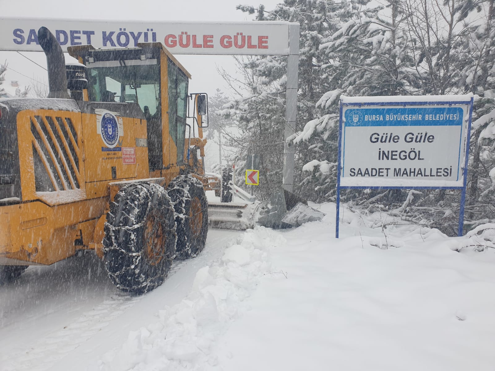 Bursa Büyükşehir Belediyesi ekipleri, 17 ilçedeki karla mücadele çalışmaları kapsamında gün boyunca kapanan 140 mahalle yolunu ulaşıma açtı. Yağışın etkili olduğu 24 mahalledeki kar mesaisi ise kesintisiz sürüyor.