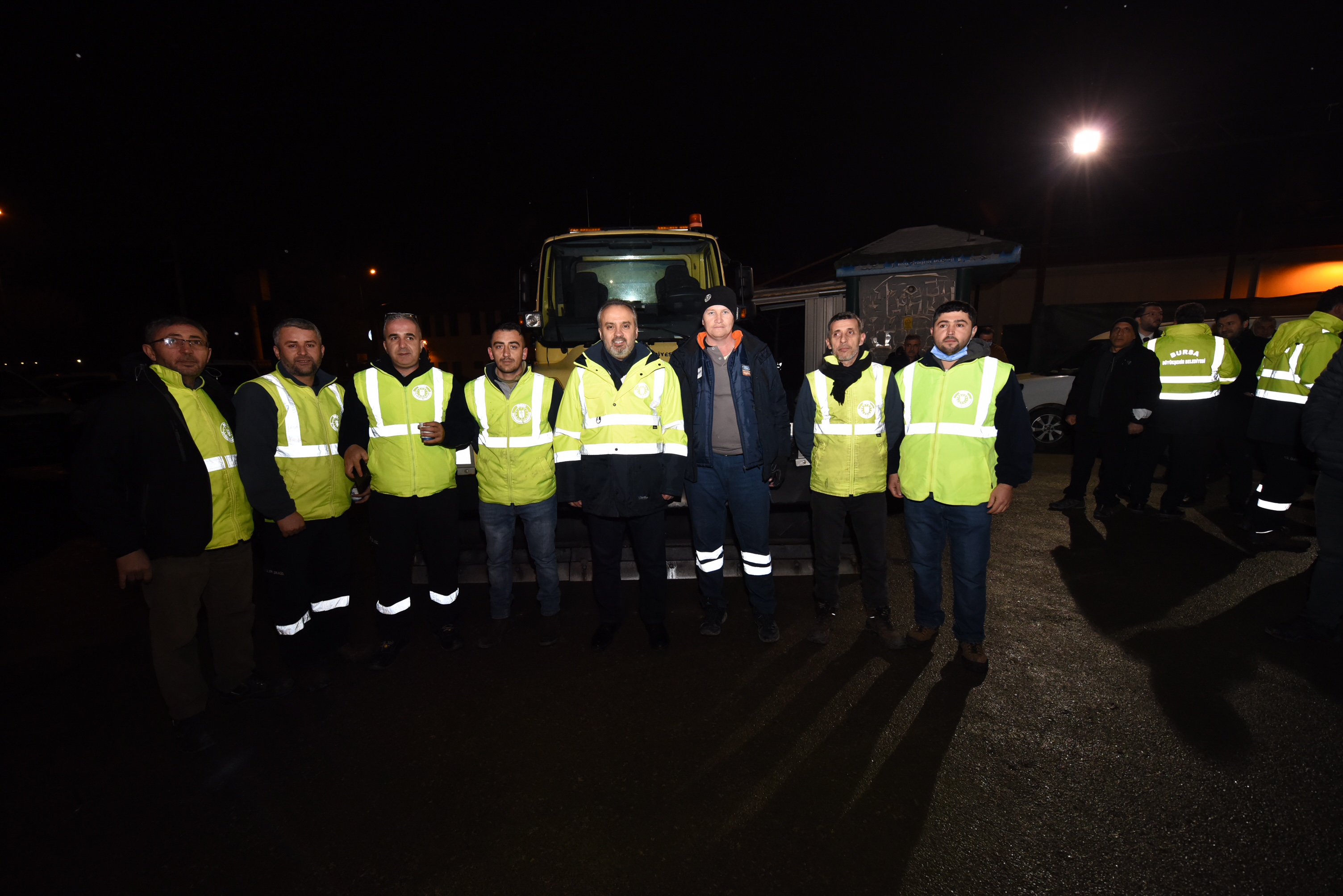 Bursa Büyükşehir Belediye Başkanı Alinur Aktaş, kar yağışının etkili olmaya başladığı ilk günden bu yana gece gündüz büyük bir özveriyle çalışıp, 17 ilçede de ulaşım noktasında sorun yaşatmayan personeli gece yarısı şantiyede ziyaret etti. Şiddetli kar yağışına rağmen Bursa’daki sorunsuz ulaşımın gayretli çalışmayla sağlandığını dile getiren Başkan Aktaş, tüm personele kendi elleriyle salep ikram etti.