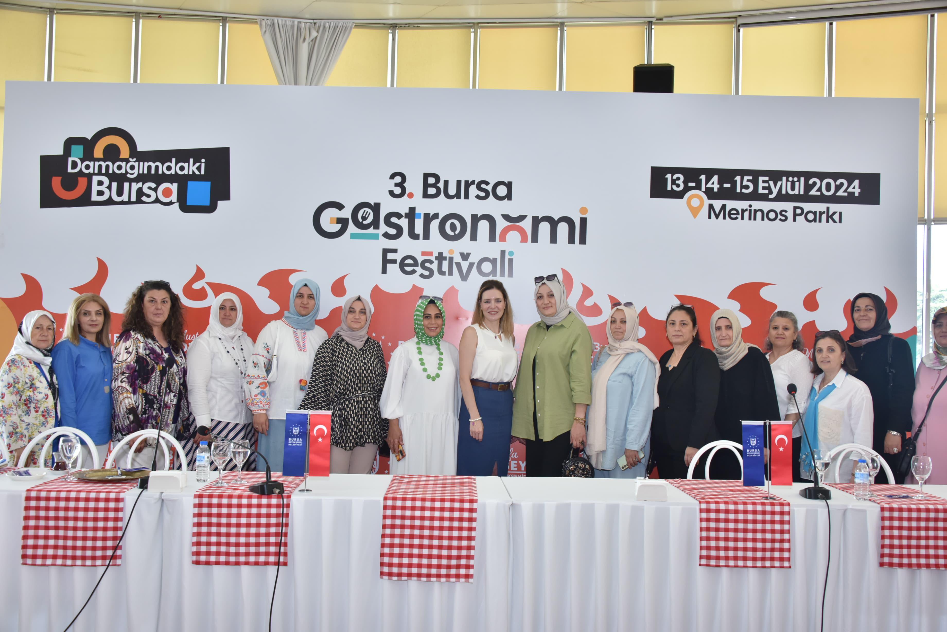 Bursa Büyükşehir Belediyesi tarafından 13-14-15 Eylül tarihlerinde Merinos Parkı’nda düzenlenecek olan 3. Bursa Gastronomi Festivali’nin heyecanı tüm kenti sardı. Bir yandan Gastronomi Tırı 17 ilçeyi gezerek Bursa’nın kendine özgü lezzetleri tanıtılırken, bir yandan da festivalin hazırlıkları tüm hızıyla sürüyor. Pek çok yeniliğin Bursalılarla buluşturacağı festivalde, üretim ve satış yapma kapasitesini elde etmiş kadın kuruluşlarını desteklemek amacıyla ‘Bursa üreten kadınlar sokağı’ da oluşturulacak. Festival öncesinde Bursa Büyükşehir Belediyesi ve 41 kadın kuruluşu arasında düzenlenen törenle sözleşme imzalandı. Merinos Atatürk Kongre Kültür Merkezi’ndeki programa, Bursa Büyükşehir Belediye Başkanı Mustafa Bozbey’in eşi Seden Bozbey, Büyükşehir Belediyesi Genel Sekreter Yardımcısı Mehmet Yıldız, Dış İlişkiler Dairesi Başkanı Pınar Işıkyıldız, Kültür AŞ Genel Müdürü Yankı İçöz, belediye bürokratları, kadın dernekleri ve kooperatiflerinin üyeleri katıldı.