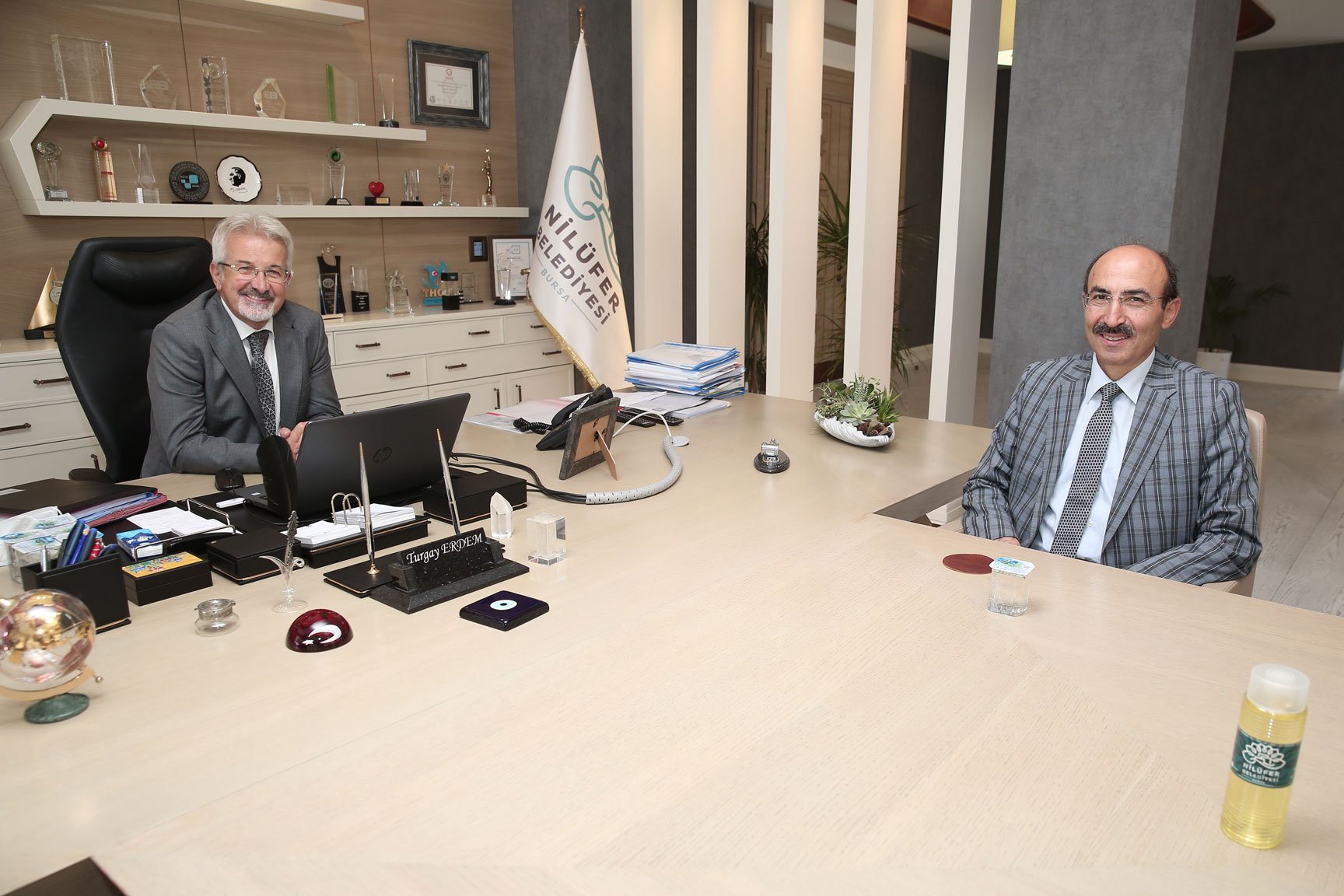 Bursa Vali Yardımcılığı görevine atanan Mustafa Kılıç, Nilüfer Belediye Başkanı Turgay Erdem’i makamında ziyaret etti.