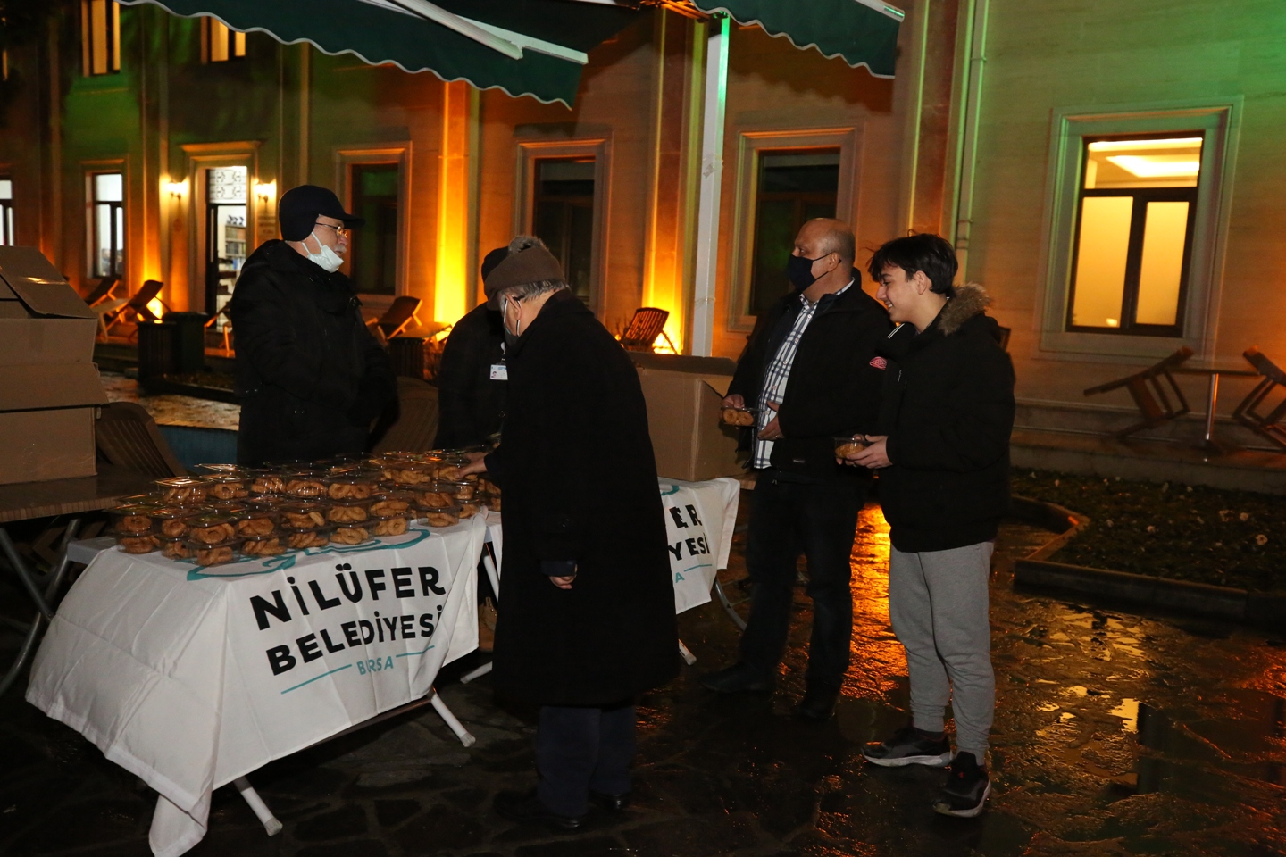 Dua ve ibadetle geçirilen Kandil gecesi, Nilüfer Belediyesi ekipleri ilçedeki camilerin önünde vatandaşlara Kandil simidi ikram etti.