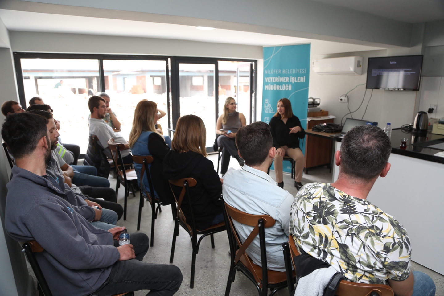 Nilüfer Belediyesi Veteriner İşleri Müdürlüğü, sahada görev yapan personeline hayat boyu öğrenme kapsamında ‘Sahipsiz Hayvanlara Yaklaşma ve Müdahale Teknikleri’ isimli eğitim programı başlattı. Alaaddinbey Mahallesi’ndeki Ek Hizmet Binası’nda yapılan eğitimin ilk bölümünde Hayvan Hakları Kanunu ve Personelin Yasal Sorumlulukları ile ilgili bilgilendirme yapıldı. Bursa Barosu Hayvan Hakları Komisyon Başkanı Avukat Dilruba Uslu'nun verdiği eğitimde personele güncel Hayvan Hakları Kanunu anlatıldı. Katılımcılar, bu kanun kapsamındaki yasal sorumlulukları hakkında bilgilendirildi. Bursa Barosu yetkilileri, ilk defa yerel yönetimlere bu kapsamda bir eğitim düzenlediklerine dikkat çekti.