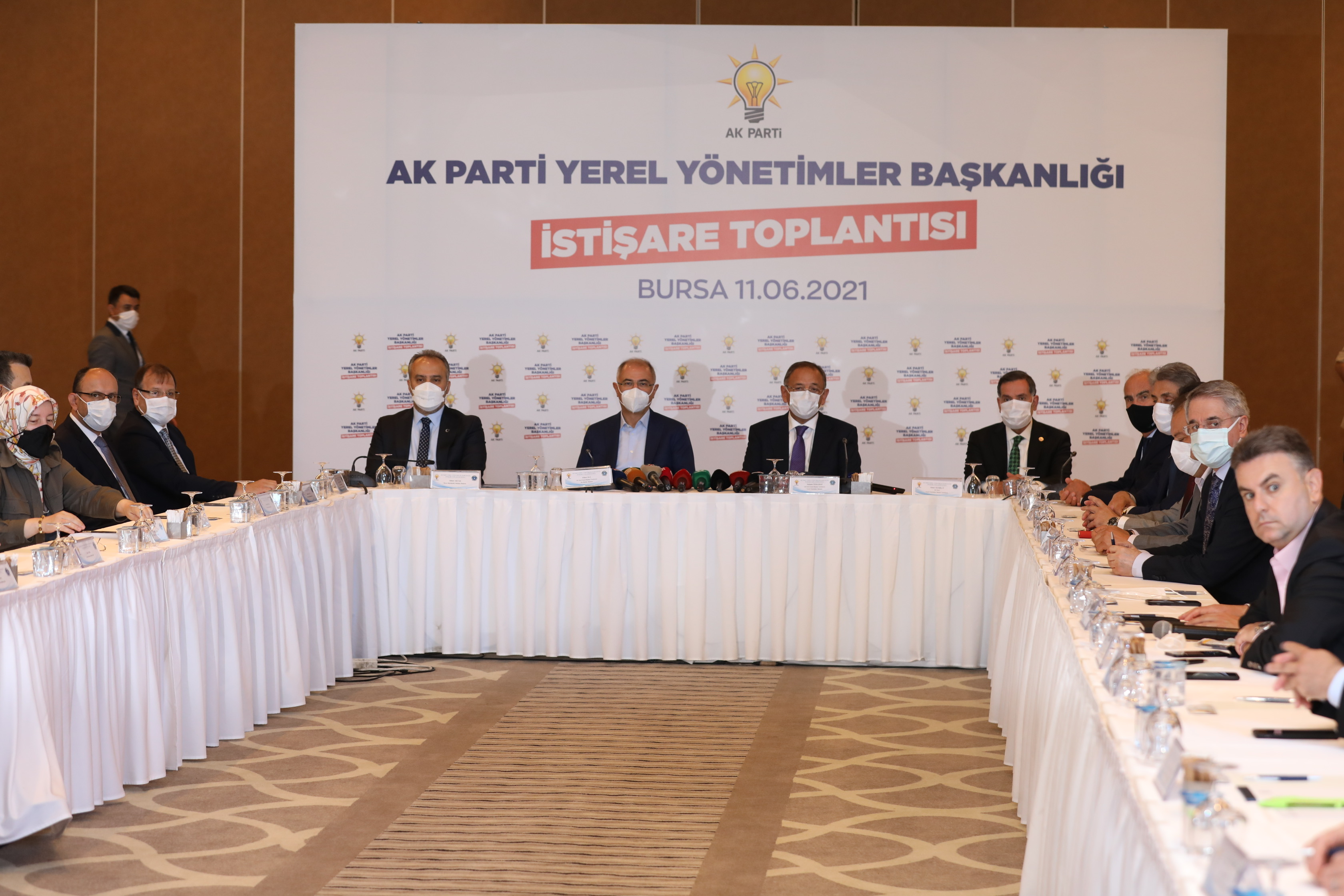 AK Parti Yerel Yönetimler Başkanlığı İstişare Toplantısı, AK Parti Genel Başkan Yardımcısı Mehmet Özhaseki’nin başkanlığında, Dış İlişkilerden Sorumlu Genel Başkan Yardımcısı Efkan Ala, Bursa Milletvekilleri, Bursa Büyükşehir Belediye Başkanı Alinur Aktaş, Balıkesir, Denizli, Sakarya, Kahramanmaraş ve Kocaeli Büyükşehir ile Osmangazi ve Yıldırım Belediye Başkanları’nın katılımı ile başladı. Toplantıda ev sahibi olarak söz alan Bursa Büyükşehir Başkanı Alinur Aktaş, sorun ve sıkıntıların ele alınıp, çözüm önerilerinin sunulduğu istişare toplantısının hayırlı olmasını diledi.