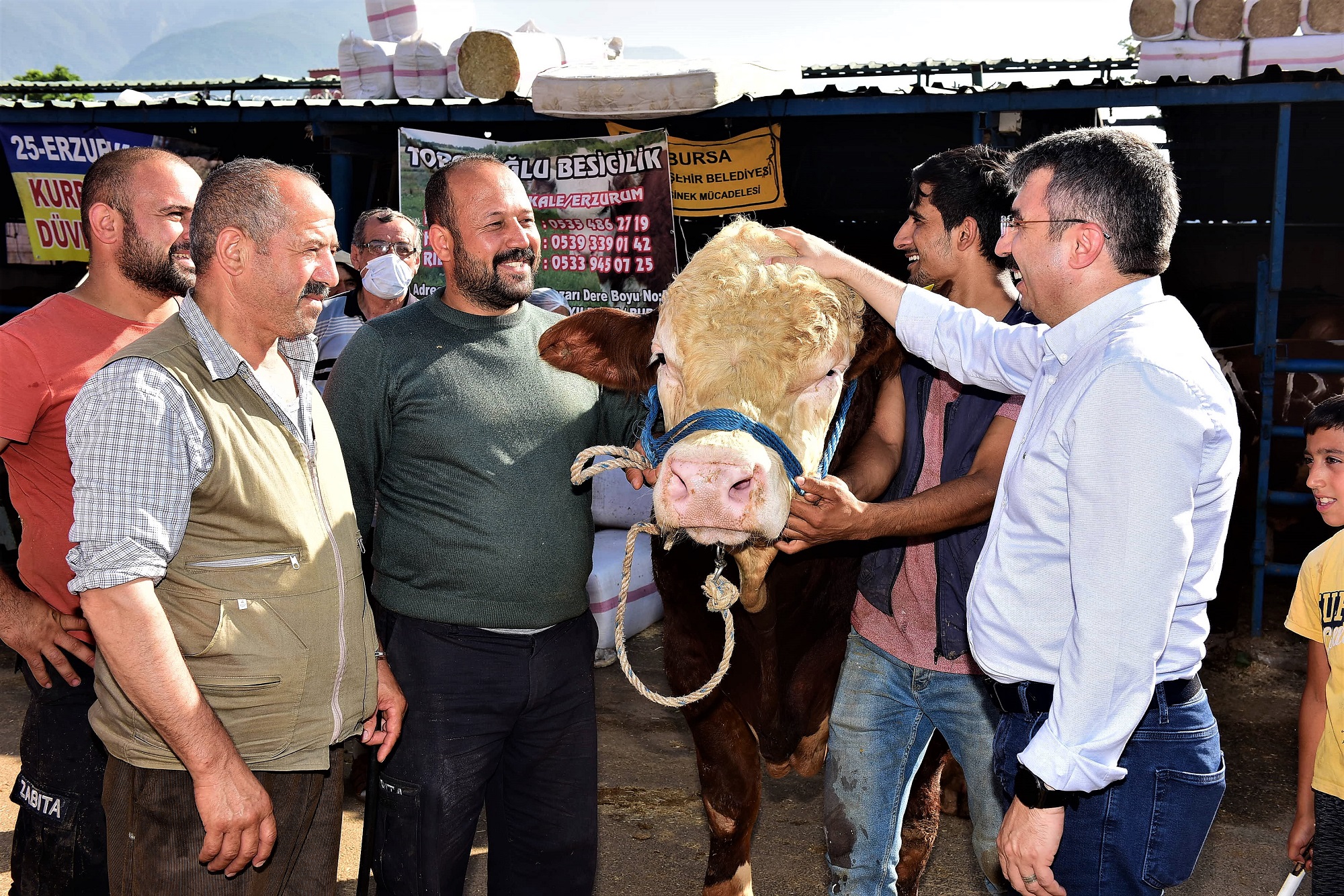 Yıldırım Belediye Başkanı Oktay Yılmaz, Kurban Bayramı’na sayılı günler kala İsabey Kurban Pazarı’nı ziyaret etti. Pazarda inceleme yapan Başkan Yılmaz, satıcılar ve vatandaşlarla da sohbet etti. İsabey Kurban Pazarı’nda, 7 bin 100’ü büyükbaş, 5 bini de küçükbaş olmak üzere toplam 12 bin 100 kurbanlığın satışa sunulduğunu belirten Başkan Oktay Yılmaz, “İlçemizde bayramın huzurlu geçmesi için gerekli tüm tedbirleri aldık. Yıldırım’da, 15’ i resmi 8’i özel olmak üzere toplam 23 kurban kesim noktası belirledik. Vatandaşlarımız bu alanlarda kurbanlarını güvenli ve hijyenik şartlarda kesebilirler. Bayram süresince, kurban kesim noktaları denetimimiz altında olacak. Zabıta Müdürlüğümüz, Veteriner İşleri Müdürlüğümüz ve Temizlik İşleri Müdürlüğümüz görevlerinin başında” dedi.