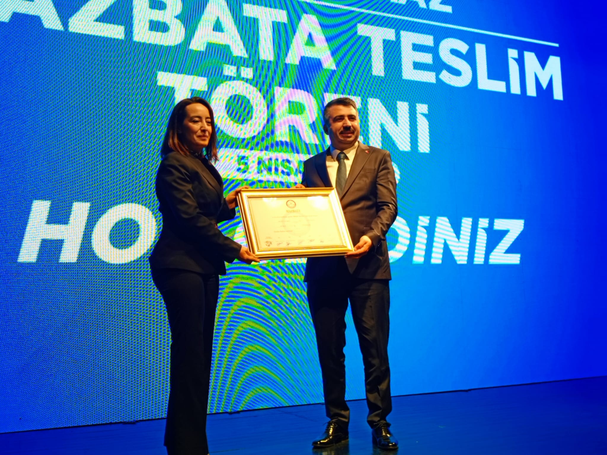 Oktay Yılmaz mazbatasını Avukat Berna Hakim Uzun'un elinden aldı.