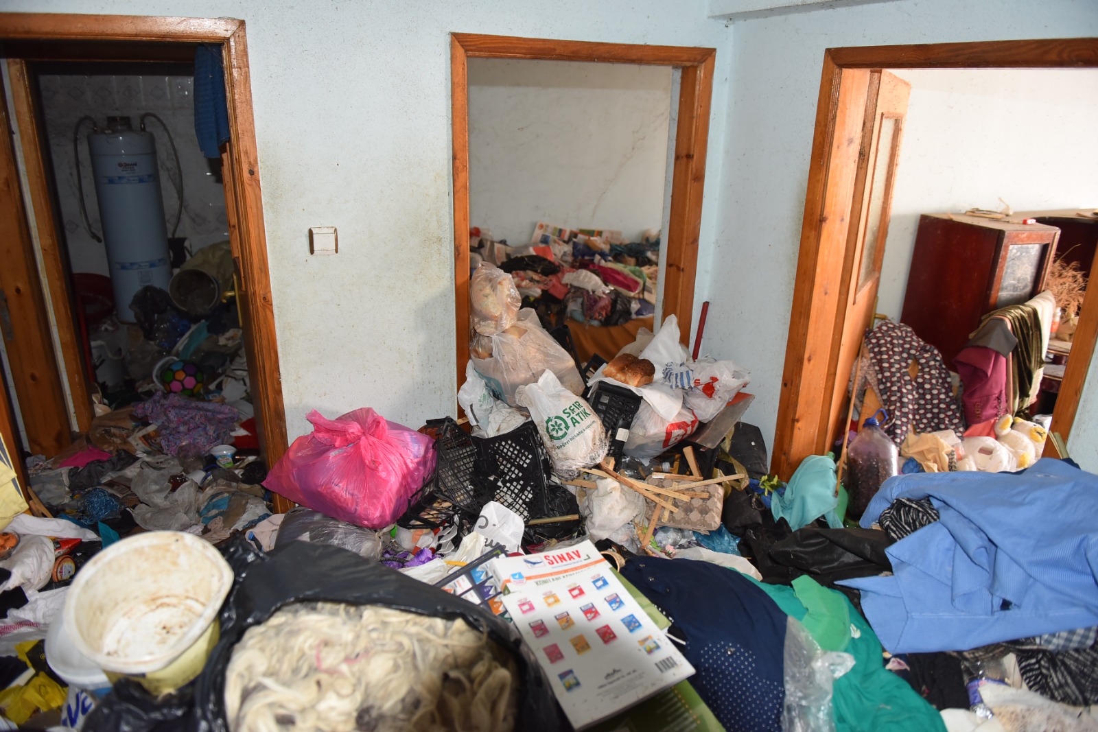 Yıldırım Belediyesi, çöp yığınına dönen evi temizleyerek dezenfekte etti.