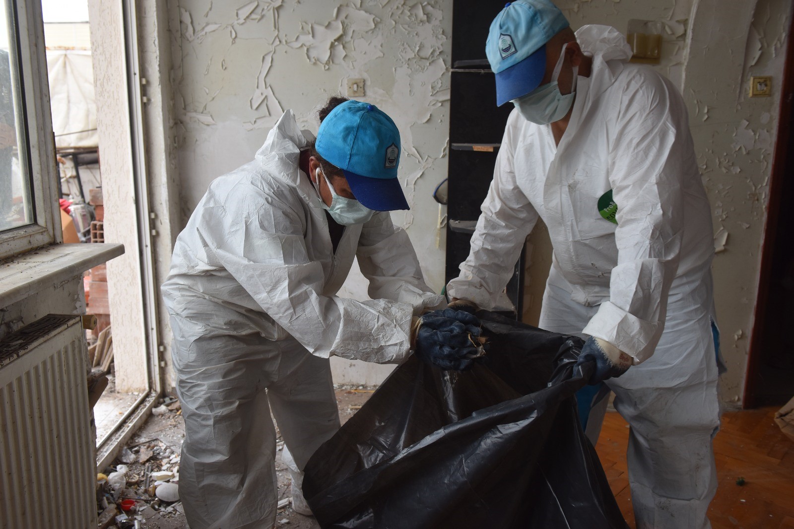 Yıldırım Belediyesi, çöp yığınına dönen evi temizleyerek dezenfekte etti.