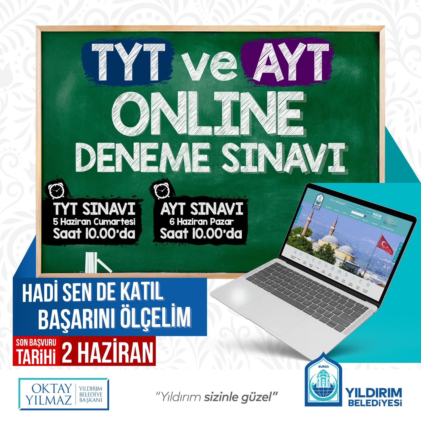 Yıldırım Belediyesi, salgın nedeniyle eğitimlerini evden sürdürerek üniversiteye hazırlanan öğrencilere destek olmaya devam ediyor. Hayata geçirmiş olduğu “Ücretsiz Üniversiteye Hazırlık Kursları” ile uzman eğitimcileri gençler ile buluşturarak geleceklerini inşa etmelerine katkı sağlayan Yıldırım Belediyesi, üniversite sınavının yaklaşmasıyla birlikte öğrencilerin başarısını ölçmek adına online deneme sınavları düzenliyor. Yıldırım Belediyesi, 5 Haziran Cumartesi günü saat 10.00’da Temel Yeterlilik Testi (TYT), 6 Haziran Pazar günü saat 10.00’da ise Alan Yeterlilik Testi (AYT) yaparak gençlerin kendilerini ölçebilmelerine imkân sağlayacak.
