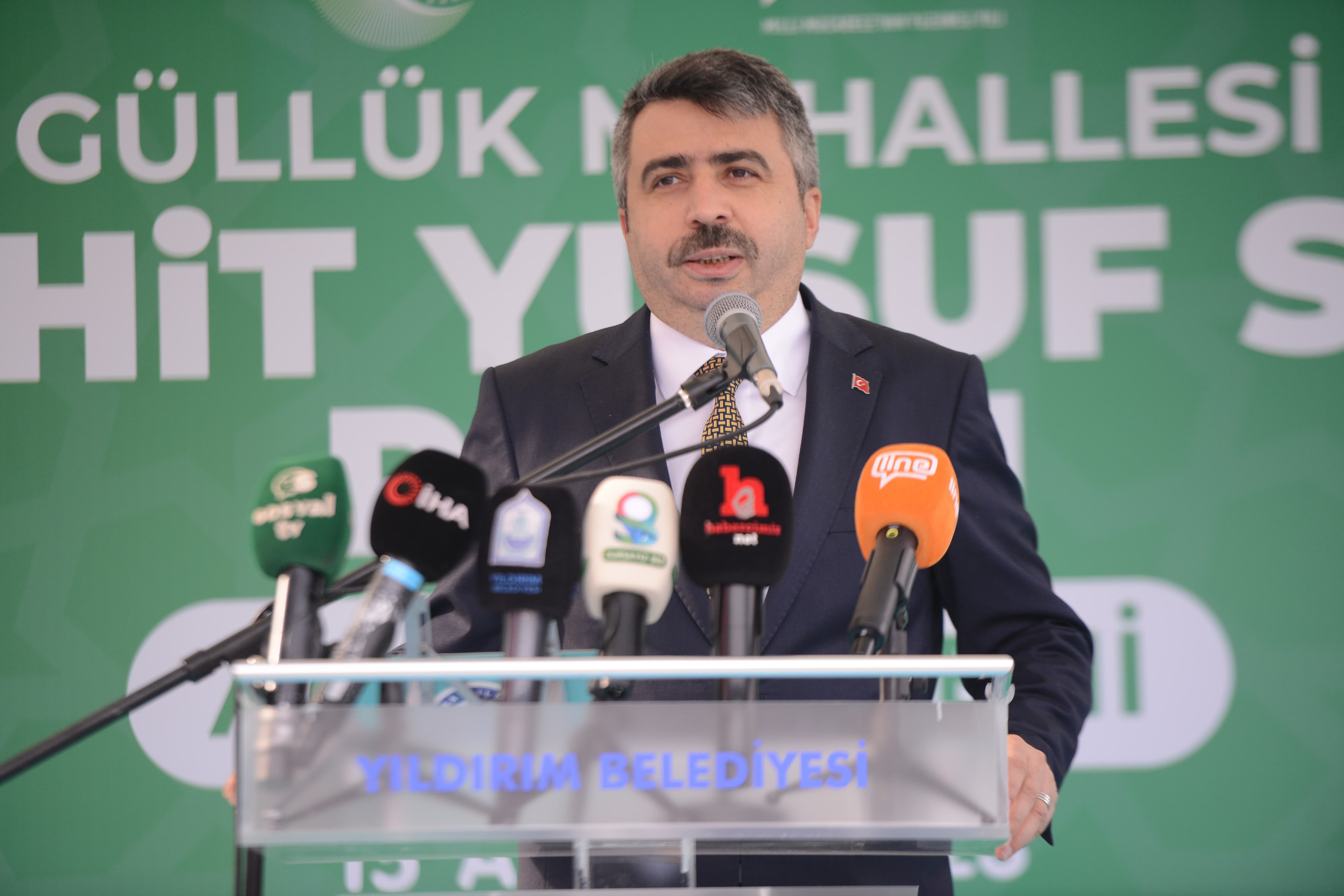 Şehit Yusuf Sel Parkı’nın açılışında konuşan Yıldırım Belediye Başkanı Oktay Yılmaz, “Bugün hem yeni bir alanı ilçemize kazandırıyoruz hem de şehidimiz Yusuf Sel’e vefa borcumuzu bir nebze de olsa yerine getirmiş oluyoruz. 2 bin 144 metrekarelik alana sahip parkımızın bin 195 metrekaresi yeşil alandan oluşuyor. Ayrıca parkımızı yeraltı damlama ve yağmurlama sulama sistemlerini entegre bir şekilde kullanılarak su tüketimini azaltacak şekilde planladık. Hayırlı uğurlu olsun” ifadelerini kullandı.