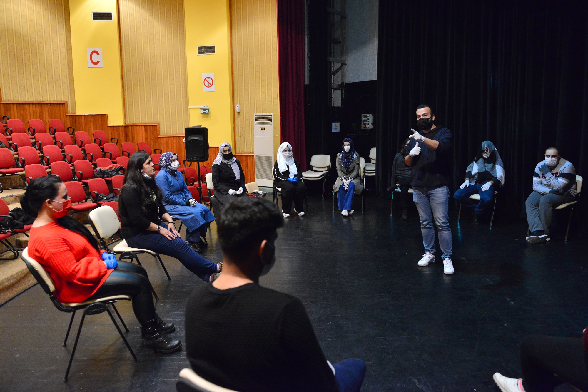 Yıldırım Belediyesi, tiyatronun ilk adımı olan dramayı, kursiyerlerin eğlenerek ve uygulayarak öğrenmelerini sağlıyor. Kültür ve Sosyal İşler Müdürlüğü bünyesinde Adile Naşit Tiyatrosu’nda 16 yaş ve üzeri Yıldırımlılar için ücretsiz düzenlenen çalışmalarda 23 kursiyer, 4 aylık eğitim programı kapsamında dikkat ve algı odaklı farkındalık çalışmaları gerçekleştiriyor. İki dönem halinde gerçekleştirilecek kurs kapsamında skeç çalışmaları da yapılan eğitimlerin sonunda kursiyerlere katılım belgesi verilecek. Tiyatro eğitmeni Ayfer Yiğit Saraçoğlu idaresinde, koronavirüs salgını önlemleri kapsamında maske, mesafe ve hijyen kurallarına uyularak yapılan çalışmalar oldukça eğlenceli görüntülere sahne oluyor. Eğitimler kapsamında Uygulamalı Drama Kursu çalışmaları Perşembe günleri 17.00-19.00 saatleri arasında gerçekleştiriliyor.