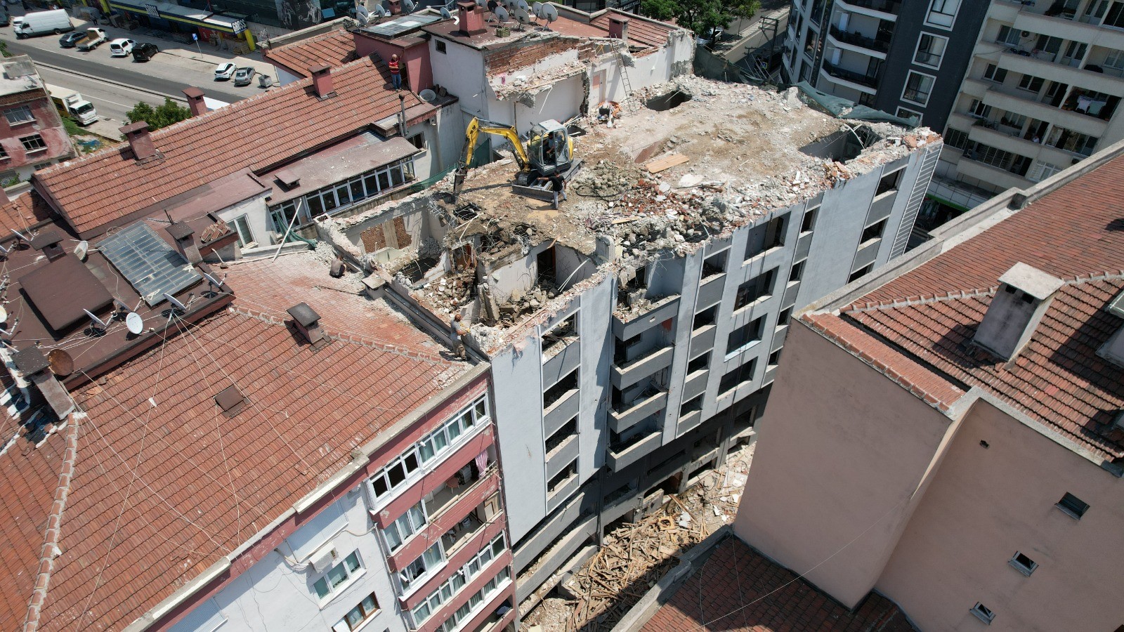 Yıldırım Belediyesi, Yıldırım Mahallesi 14. Yeşil Sokak’ta bulunan 19 daireden oluşan binayı, risk taşıdığı gerekçesiyle kentsel dönüşüm çalışmaları kapsamında yıkım çalışmasına başladı.