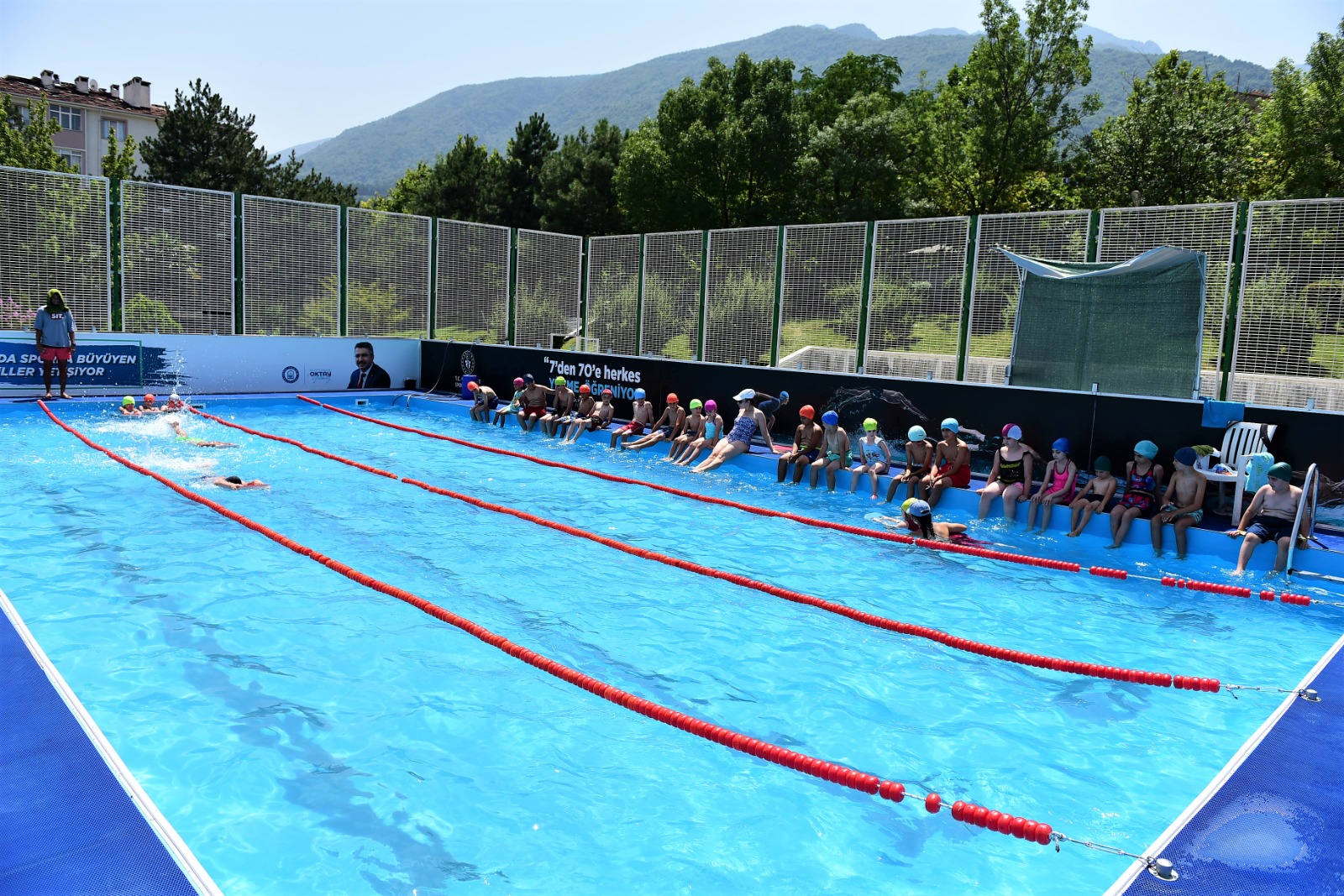 Yüzme sporunun çocuklar için çok önemli olduğunu vurgulayan Yıldırım Belediye Başkanı Oktay Yılmaz, “Bakanlığımızın ‘Yüzme Bilmeyen Kalmasın’ projesini çok değerli buluyor ve elimizden gelen desteği veriyoruz. Yüzme sporu çocuklarımızın fiziksel ve sosyal gelişimi için çok önemli. Yıldırım Belediyesi olarak Vakıf Mahallesi’nin akabinde Mimar Sinan Mahallesi’nde kurduğumuz havuzla, vakıflardan, sivil toplum kuruluşlarından, Kuran Kurslarından gelen çocuklarımıza hem yüzme öğretiyoruz hem de yüzme sporunu sevdirmeye çalışıyoruz. 12x20 ebatında ve 125 cm derinliğinde olan havuzlarımızdan toplamda 940 çocuğumuz faydalanıyor. Tüm bakım, hijyen ve işletme hizmetlerini Yıldırım Belediyesi olarak biz yerine getiriyoruz. Çocuklarımızın geleceği için çalışmalarımızı sürdüreceğiz” diye konuştu.