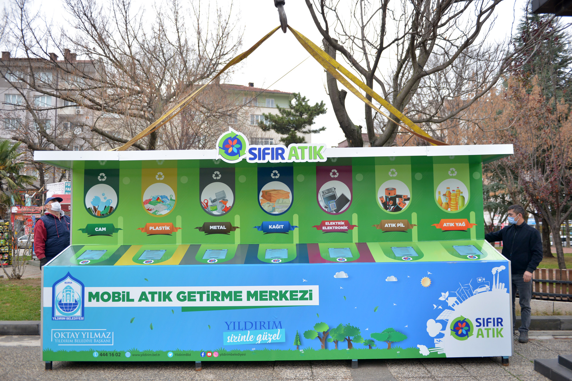 Yıldırım Belediyesi, ‘Sıfır Atık’ projesi kapsamında çevre kirliliğini önlemek ve geri dönüşümü yaygınlaştırmak amacıyla ilçenin birçok noktasına “Mobil Atık Getirme Merkezi” yerleştirdi.