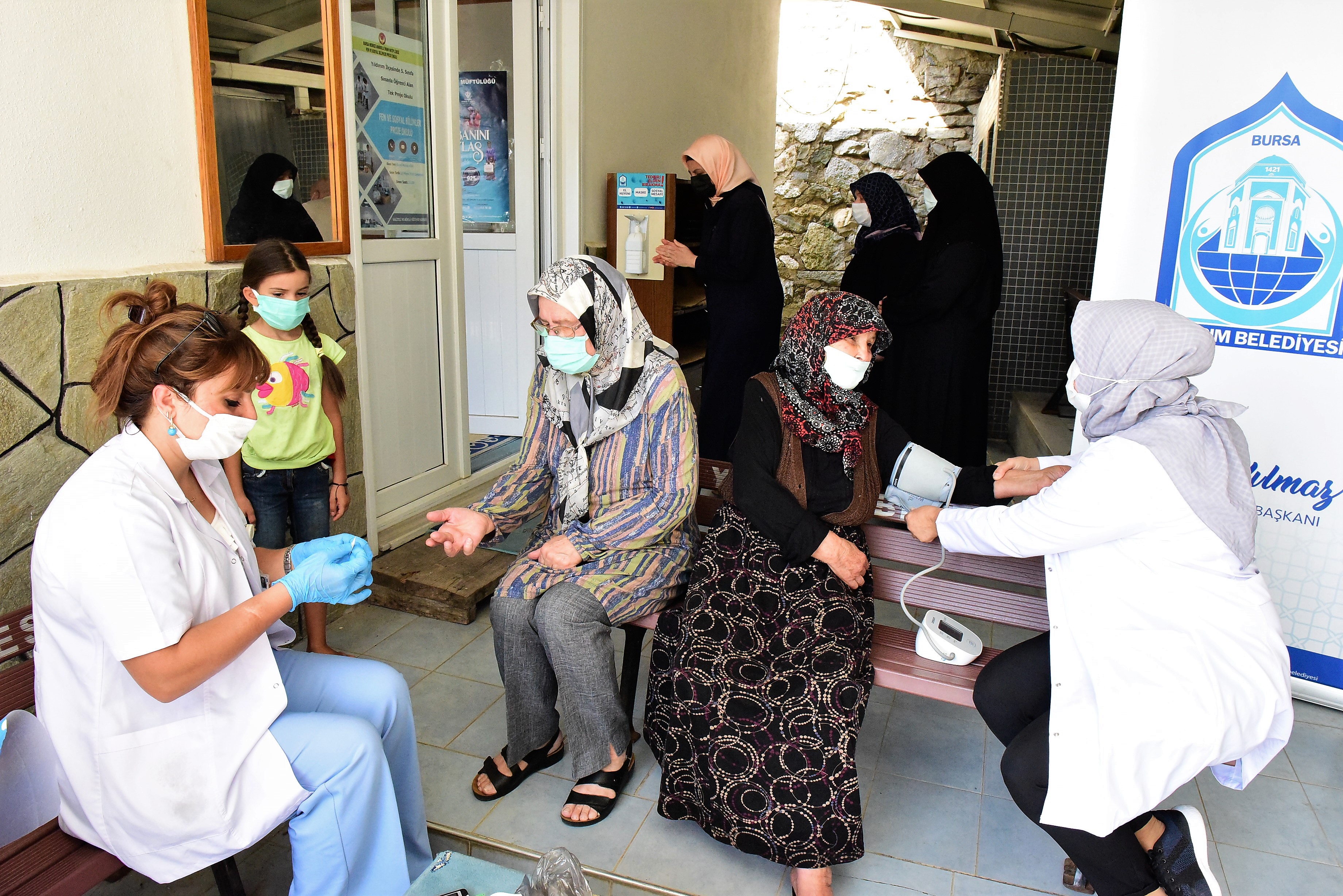 YILDIRIM BELEDİYESİ AİLE SAĞLIĞI EĞİTİM MERKEZİ’NDE GÖREVLİ HEKİM VE HEMŞİRELER, KADINLARA YÖNELİK ÖNLEYİCİ SAĞLIK TARAMALARI GERÇEKLEŞTİRİYOR. HEMŞİRELER TARAFINDAN KADINLARIN ŞEKER VE TANSİYON ÖLÇÜ
