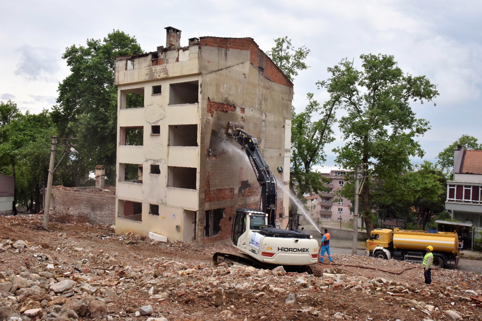 Yıkım töreninde konuşan Mevlana Mahallesi Kentsel Dönüşüm projesinin mimarı Yıldırım Belediye Başkanı Oktay Yılmaz, “Saygıdeğer Bakanım, kıymetli hazirun hepinizi saygı, sevgi ve muhabbetle selamlıyorum. Yıldırım, yüzölçümü açısından Bursa’nın yüzde birine karşılık gelirken, nüfus bakımından ise bu oran yüzde 21 civarında. Bu açıdan bakıldığında Yıldırım, Bursa’nın en büyük ikinci ilçesiyken, nüfus yoğunluğu en yüksek olan ilçe konumunda. Tarihin, kültürün, medeniyetin kenti Yıldırım; son 50 yılda yoğun göç almış, yurdun dört bir yanından gelen insanlara kucak açan ilçemiz ne yazık ki, plansız büyümenin kurbanı olmuştur. Çarpık ve kaçak yapılaşmanın ortaya çıkardığı sorunlar yıldan yıla katlanarak büyümüştür. Yıldırım’ın en önemli sorununun plansız yapılaşma olduğunu bilerek, göreve geldiğimiz 2019 yılında kolları sıvadık. Hayalimiz; tüm hemşehrilerimiz için daha yaşanabilir, modern, güvenli, yeşil, çocuklarımızın sokaklarında özgürce koştuğu, sosyal yaşam alanları ile donatılmış bir Yıldırım inşa etmekti. ‘Geleceğin Yıldırım’ını’ inşa etmek için yola koyulduğumuzda karşımıza çıkan en büyük engel imar uygulama planları oldu. 1986’dan bu yana itirazlar nedeniyle sürekli değişen imar uygulamalarına kalıcı bir çözüm bulmadan Yıldırım’da planlı ve sağlıklı bir kentleşmeye gitmek mümkün değildi” ifadelerini kullandı.