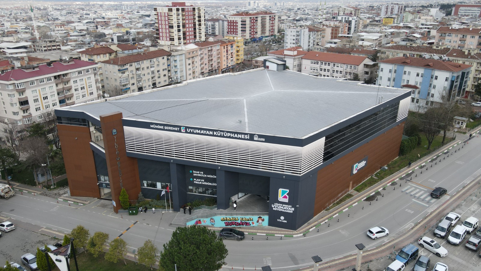 Mümine Şeremet Uyumayan Kütüphanesi, açıldığı günden bu yana Bursa'nın eğitim ve kültür yaşamına yeni bir soluk kazandırdı. Geçtiğimiz yıl Şubat ayında hizmete açılan ve 200 bini aşkın gencin buluşma noktası olan Uyumayan Kütüphane, sadece Yıldırım’dan değil şehrin her noktasından misafirlerini ağırlıyor. Gençler 7 gün 24 saat nezih ortamda ders çalışma, araştırma yapma imkânı bulurken yine kütüphane bünyesinde verilen ücretsiz eğitimler ile kişisel gelişimine katkı sağlıyor.