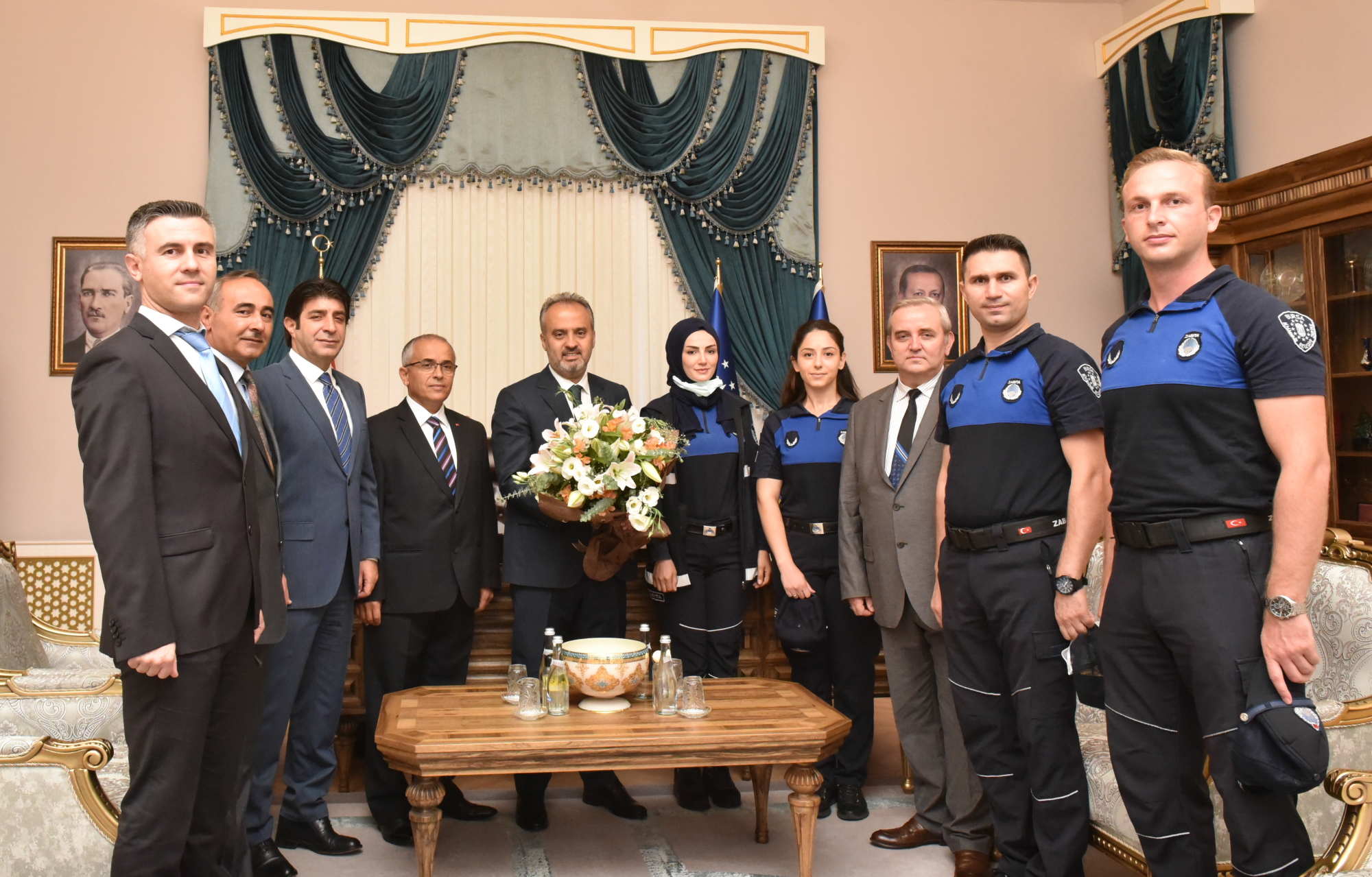 Yeniçeri Ocağı’nın 1826 yılında kapatılmasıyla oluşturulan Zabıta Teşkilatı, bu yıl 195. kuruluş yıldönümünü kutluyor. Bursa’da vatandaşların huzur ve güveni için yoğun bir mesai harcayan zabıta personeli de etkinlikler kapsamında Bursa Büyükşehir Belediye Başkanı Alinur Aktaş’ı ziyaret etti. Tarihi belediye binasında gerçekleşen ziyarete, Büyükşehir Belediyesi Zabıta Daire Başkanı Sadık Kibar ve zabıta komiserleri katıldı. Başkan Alinur Aktaş, telsizden anons yaparak, Zabıta Dairesi Başkanlığı personellerini tebrik etti. Zabıta teşkilatının Büyükşehir Belediyesi’nin dışa bakan yüzü olduğunu belirten Başkan Aktaş, “Bugün zabıta teşkilatımızın kuruluşunun 195.yılı. Zabıtalarımız şehrin esenliği, huzuru, güvenliği için bazen trafikte, bazen yol işgallerinde, bazen çarşıda büyük bir fedakârlıkla görevlerini yerine getiriyorlar. Bursa sorunlarıyla birlikte büyüyen bir şehir ama buna rağmen zabıta teşkilatımız büyük bir emek ve gayret gösteriyor.1,5 yıllık pandemi sürecinde de büyük çaba sarf ettiler. Ailelerinden, arkadaşlarından uzak kaldılar. Vatandaşlarımızın ihtiyaçlarının giderilmesi konusunda her türlü çabayı sarf ettiler. Arkadaşlarımıza çalışmaları için yürekten teşekkür ediyorum” dedi.