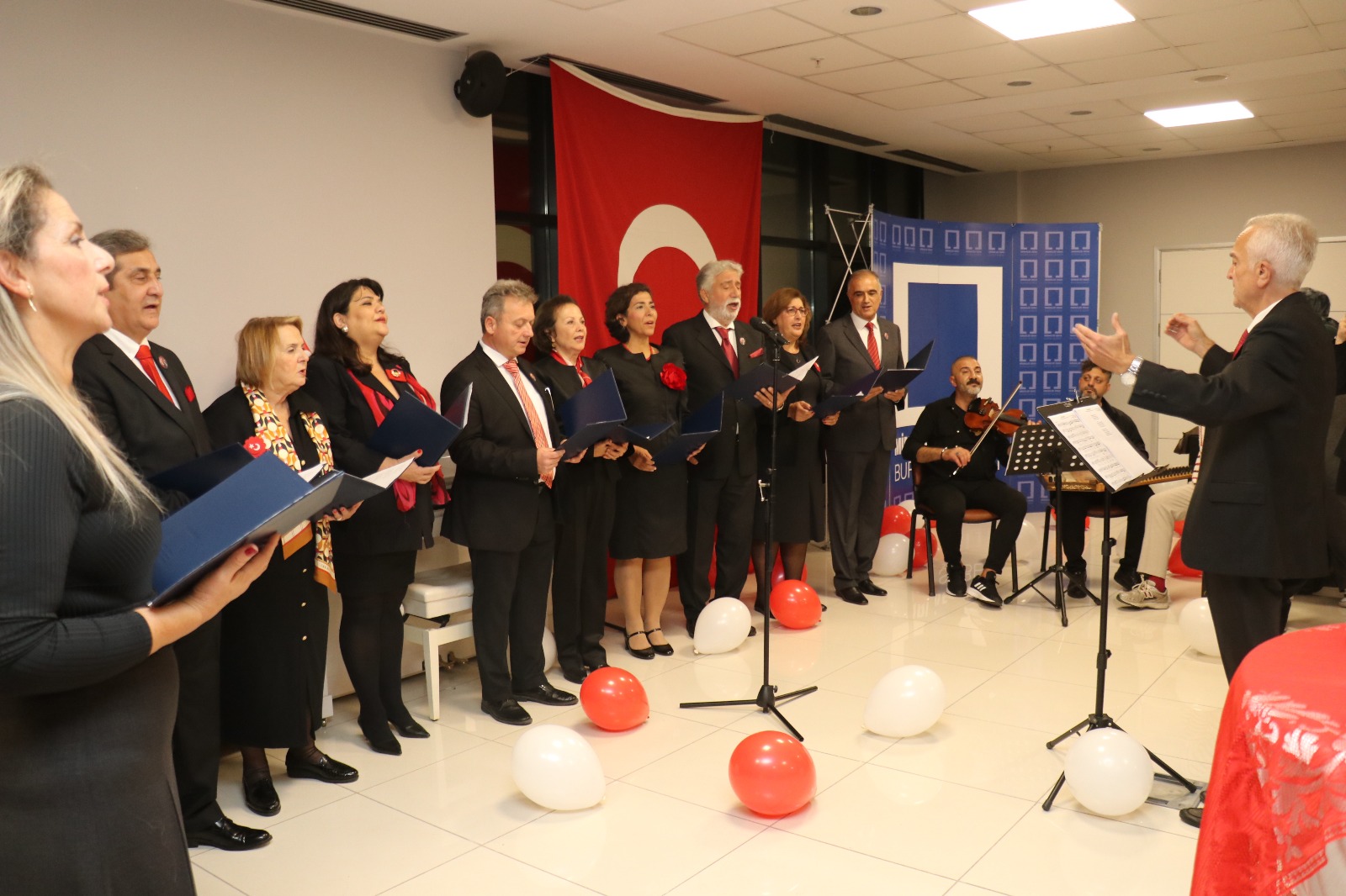 Açılış konuşmasının ardından başlayan etkinlikte, oda üyelerinden oluşan Türk Sanat Müziği korosu sahne alarak dinleyicilere unutulmaz anlar yaşattı. Atatürk'ün sevdiği eserlerin seslendirildiği bu özel bölümde, davetliler ellerindeki Türk bayraklarıyla coşkuyla koroya eşlik etti.
