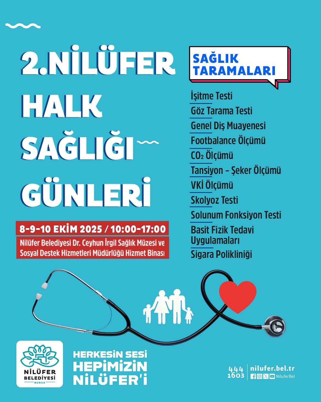 Nilüfer Belediyesi, halk sağlığını koruma ve geliştirme hedefiyle önemli bir etkinliğe imza atıyor. 8-9-10 Ekim 2025 tarihlerinde gerçekleştirilecek "2. Nilüfer Halk Sağlığı Günleri" etkinliği, Nilüfer Belediyesi Sosyal Destek Hizmetleri Müdürlüğü Hizmet Binası'nda vatandaşların erişimine açılacak.